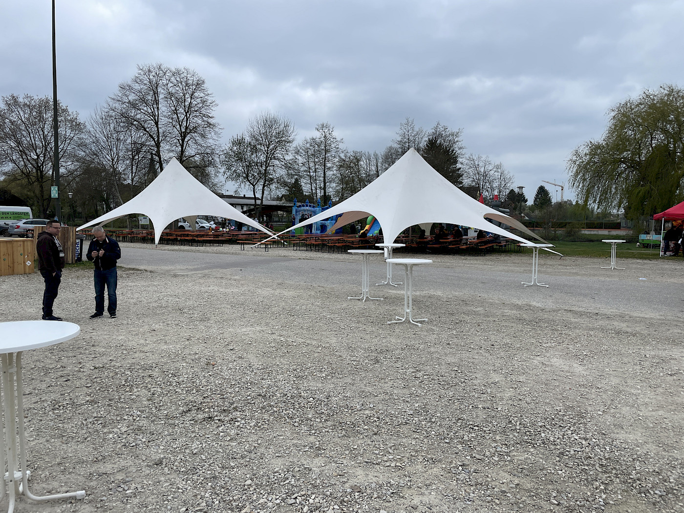 Die Ausleger müssen mit einem Bolzen im Boden verankert werden. Also geht ein Beston oder Pflasterboden nicht zum aufstellen.